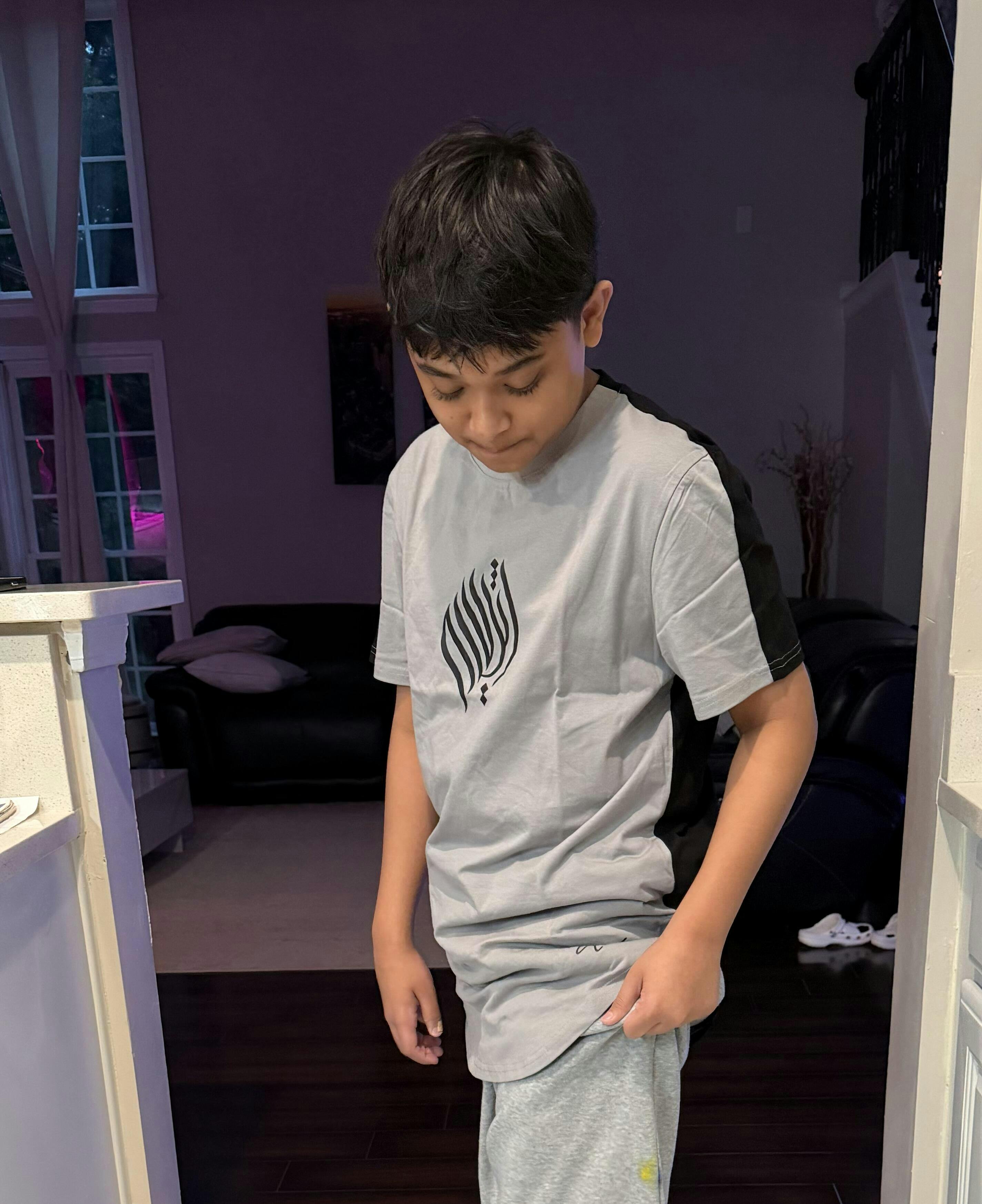 - New Hope Gray (Unique light Baby Bluish Gray Color) & Black Split Panel T-shirt